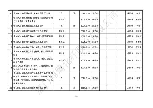 廈門市揮發(fā)性有機物污染防治企業(yè)自查表(2021年 第二季度)